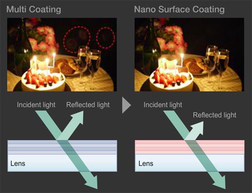 The H-HS35100's UED (Ultra Extra-Low Dispersion) lens and 2 ED (Extra-Low Dispersion) lenses minimize chromatic aberration and distortion while the UHR (Ultra High Refractive) lens realizes high descriptive performance from corner to corner to keep our images true-to-life clear at distances up to 40 meters.Nano Surface Coating Reduces Reflection
